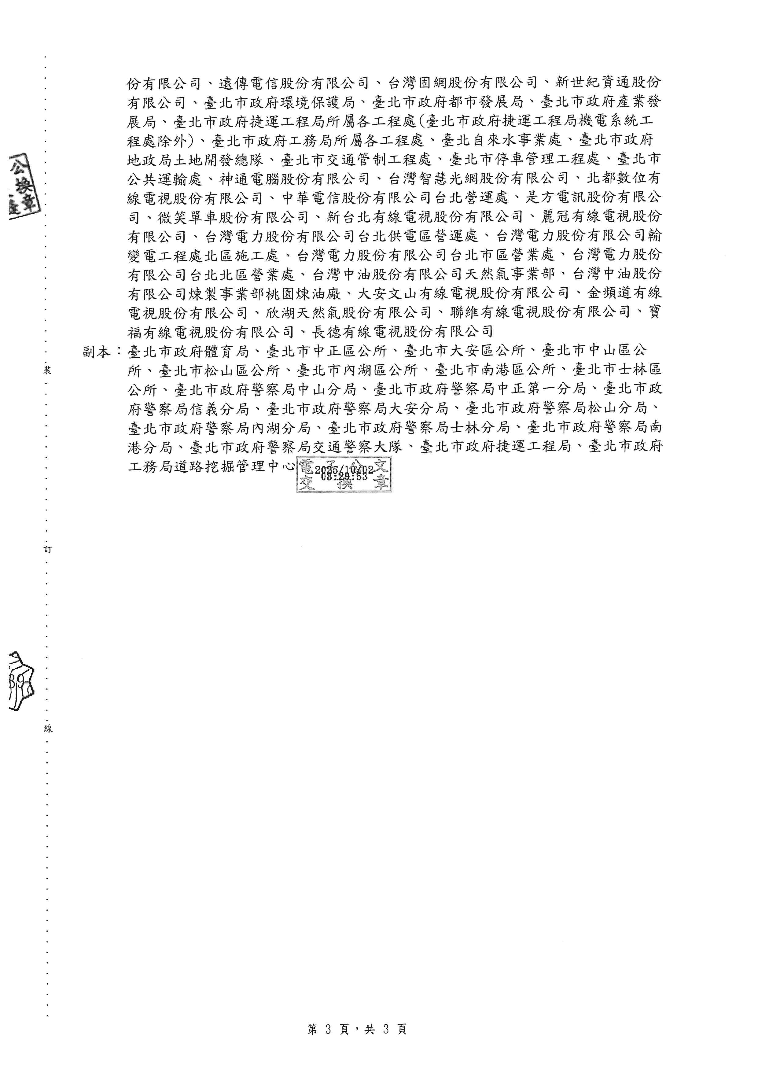 臺北市政府都市發展局轉知114年度第3季施工中建築工地總檢查,自114年10月13日至114年10月23日實施