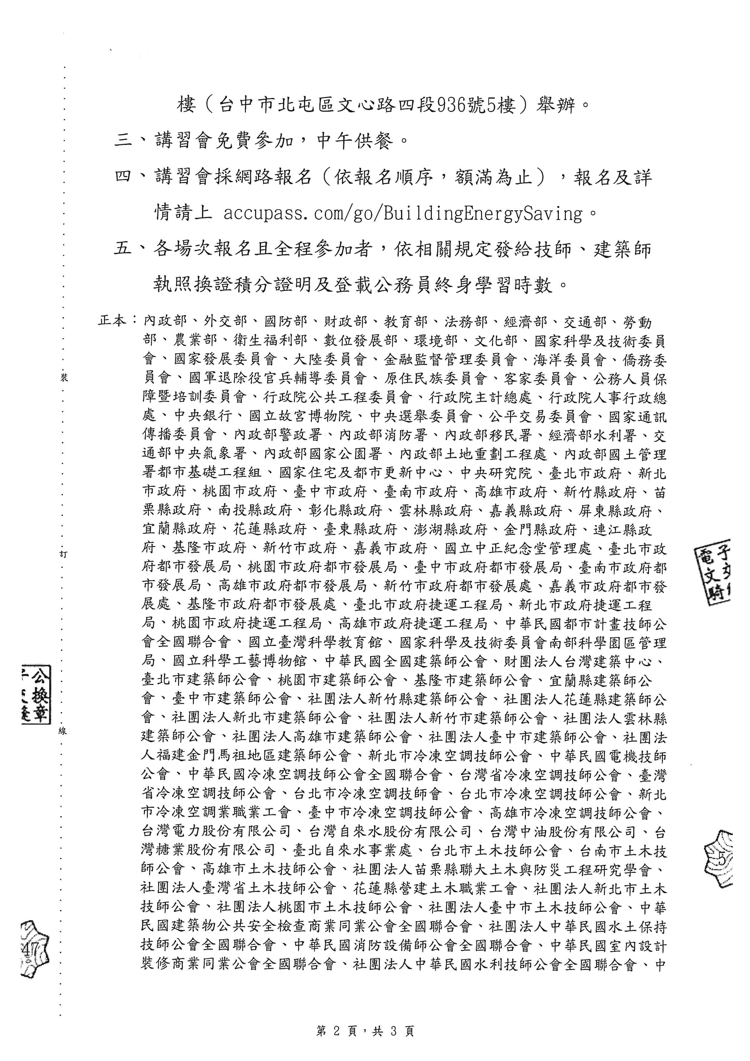 轉知財團法人台灣建築中心辦理三場次「建築節能技術推廣講習會」,敬請會員踴躍報名參加