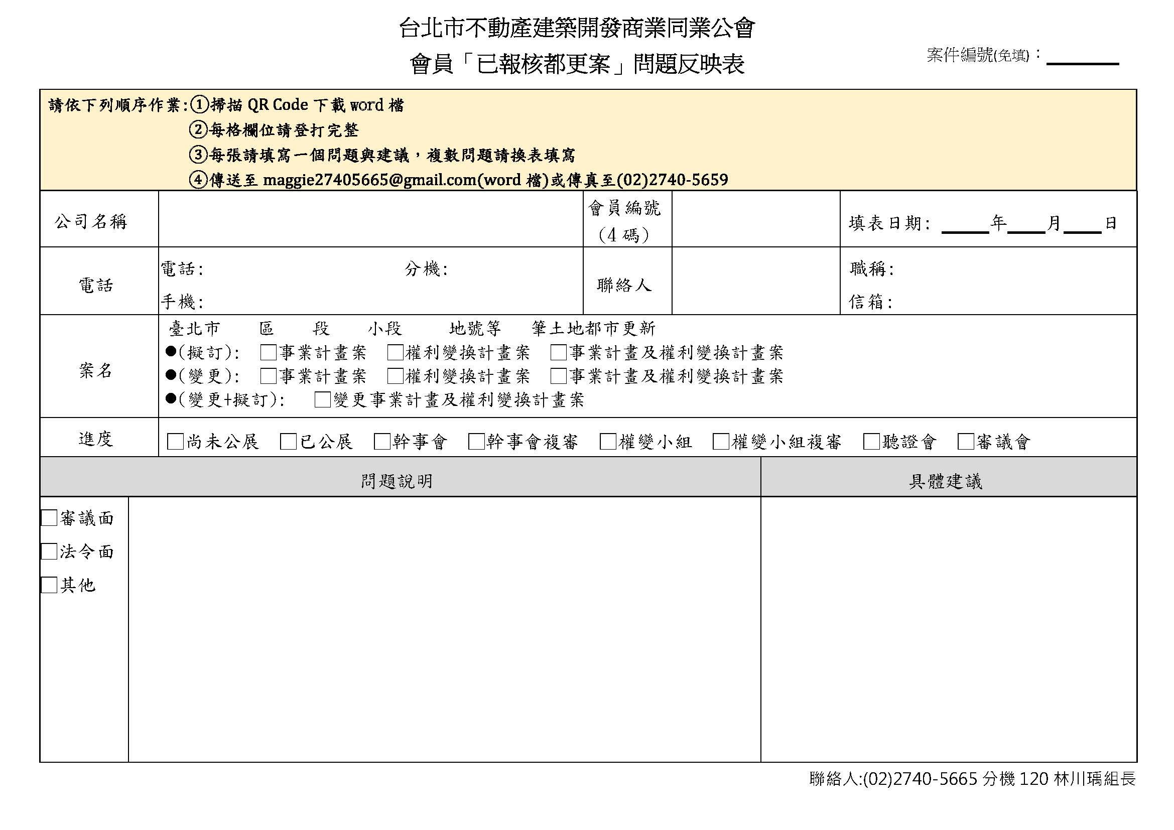 會員「已報核都更案」問題反映表