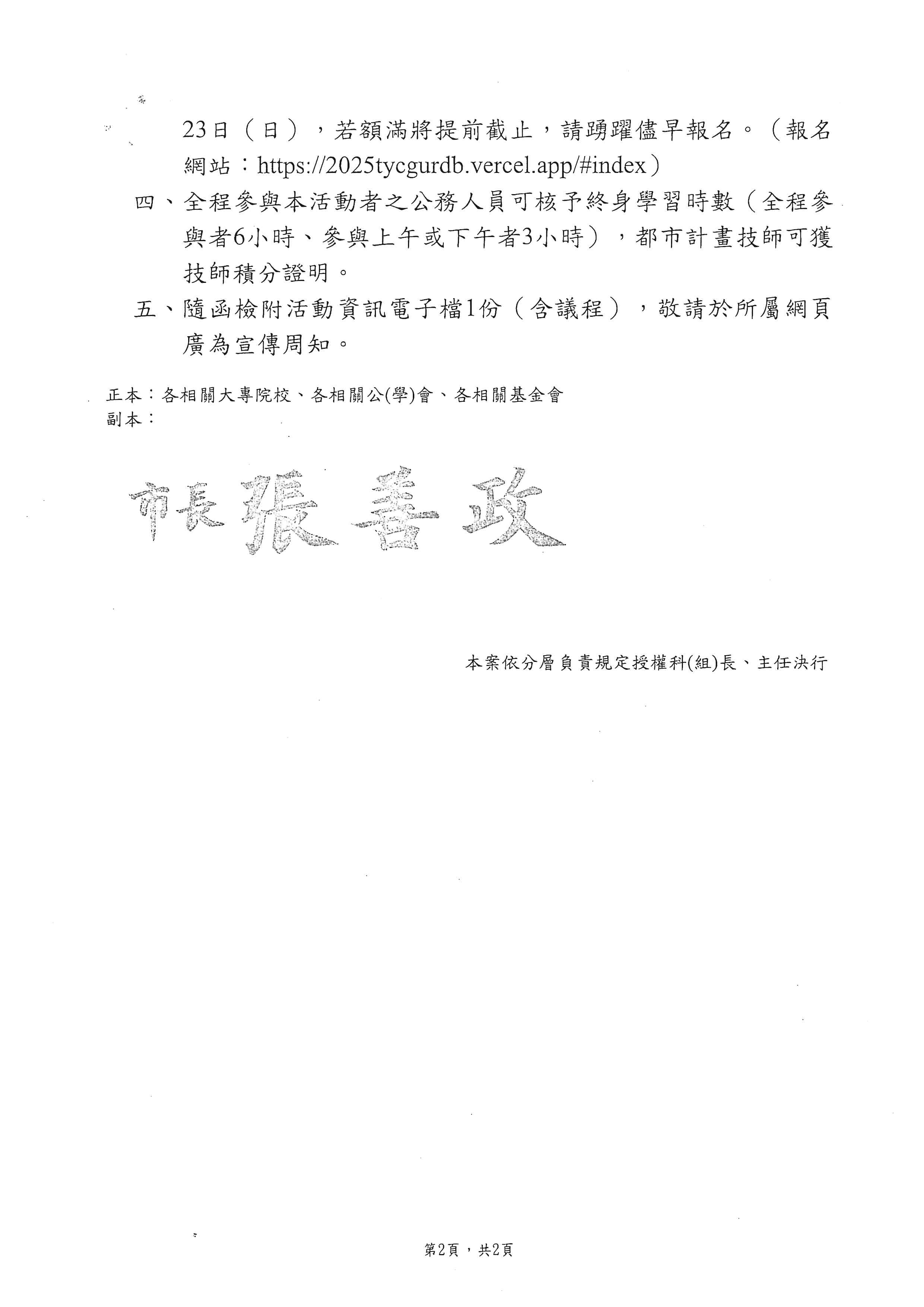 臺北市政府都市發展局轉臺北巿政府工務局為維護本市「114年度艋舺青山宮靈安尊王聖誕遶境」活動之交通安全,轉知會員配合辦理