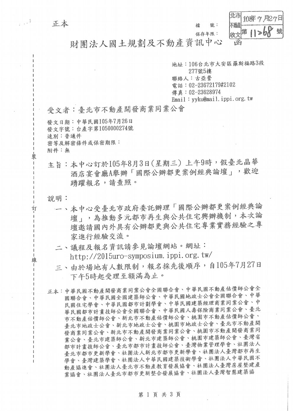 105.8.3「國際公辦都更案例經典論壇」