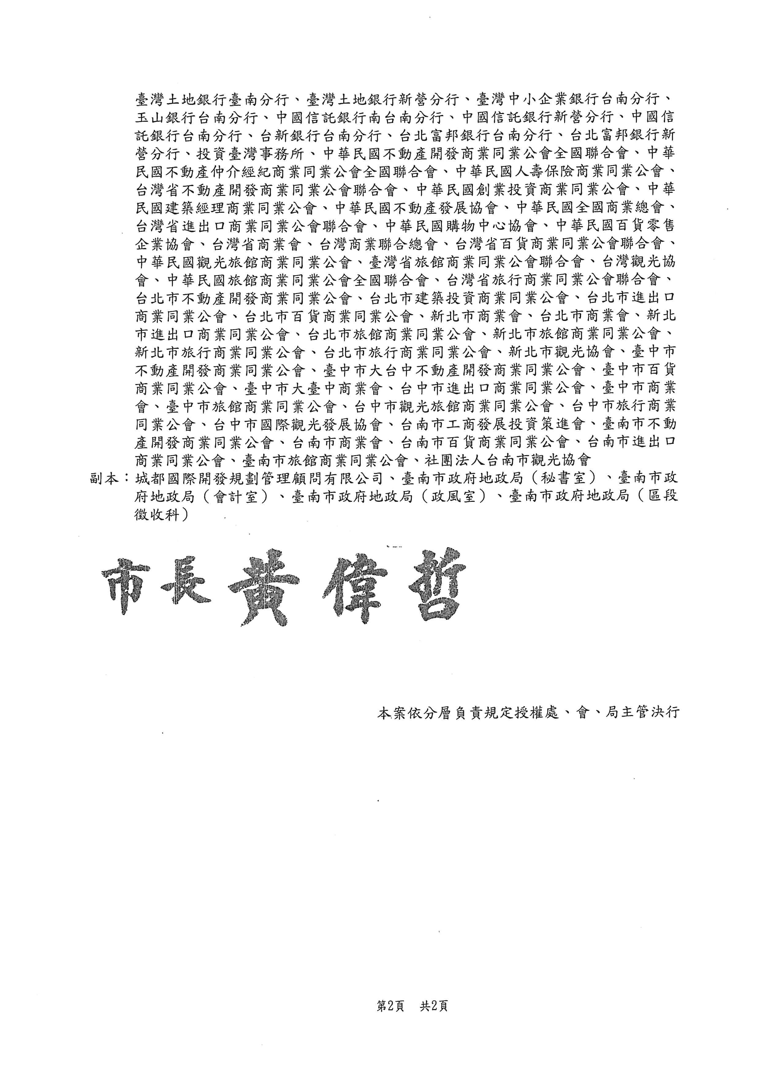 臺南市政府檢送臺南市中西區星鑽段2425、2426地號土地設定地上權案公告文及清冊1份,轉知會員周知
